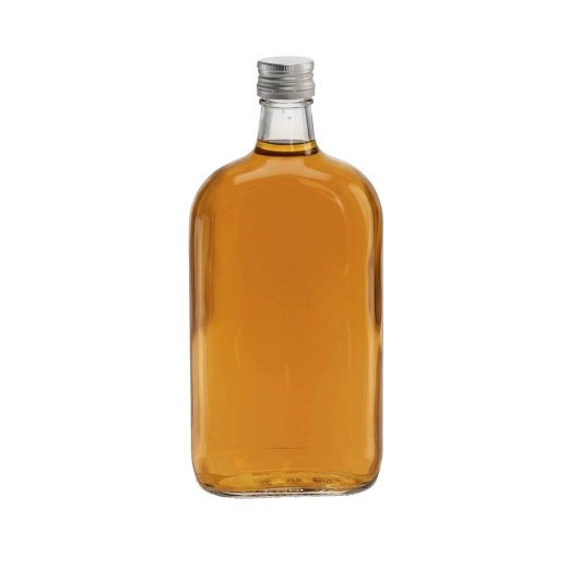 Elegante bottiglia piatta in vetro da 500 ml, ideale per liquori fatti in casa, distillati, sciroppi e succhi di frutta. Grazie al vetro trasparente risalta splendidamente il colore della bevanda e il design semplice e senza tempo si adatta a matrimoni, feste e come regalo originale. Inclusa un’chiusura a vite in alluminio da 28 mm, che garantisce una sigillatura ermetica e la protezione del contenuto.