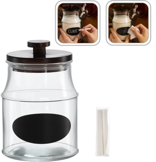 Barattolo in vetro 2,2 l con coperchio in legno, etichetta e gessetto