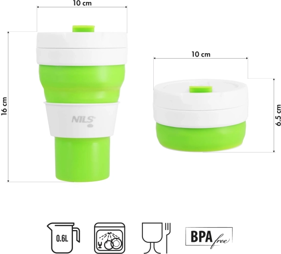 Tazza in silicone pieghevole 600 ml verde chiaro NILS Camp