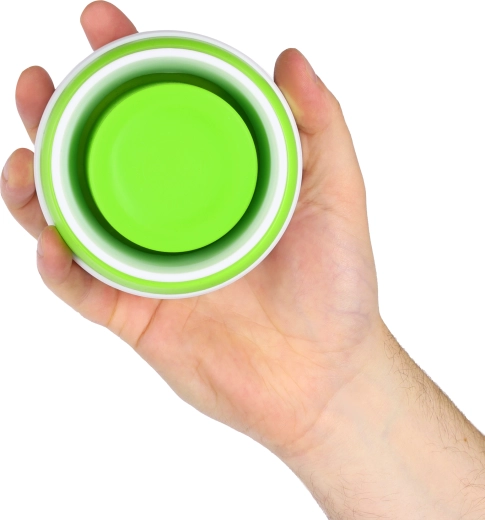 La tazza si ripiega in pochi istanti fino a un'altezza di circa 6,5–7 cm. Entra facilmente in zaino, borsa o tasca e fa risparmiare spazio in viaggio.