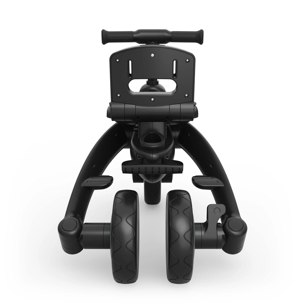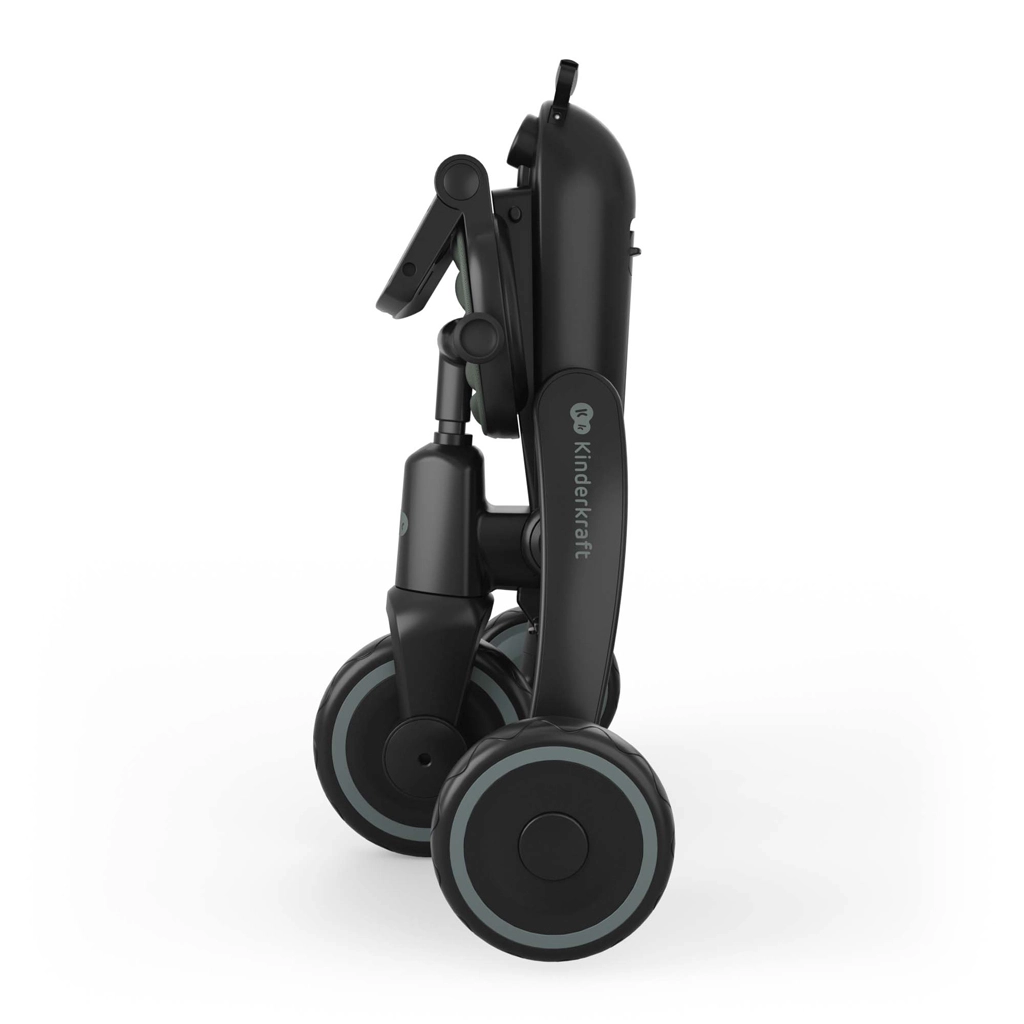 Si richiude in pochi secondi. La doppia sicura evita aperture involontarie e il triciclo chiuso può stare in piedi stabilmente sia in verticale sia in orizzontale: ideale per casa, ascensore e bagagliaio.