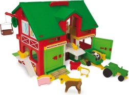 Scopri il colorato mondo della campagna con il set di gioco Play House fattoria. Un fienile a due piani con porte apribili, ascensore e gru funzionanti, trattore con rimorchio e un set di animaletti insegna ai bambini la vita in fattoria, sviluppando motricità, immaginazione e cooperazione. Realizzato con materiali atossici e resistenti, adatto dai 3 anni.