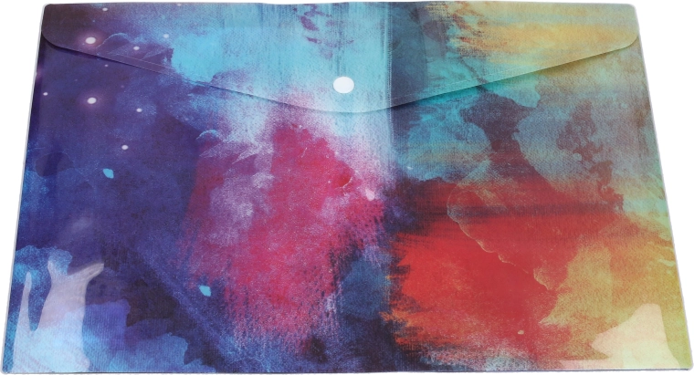 Cartellina compatta in plastica con pratico bottone a pressione per riporre in sicurezza piccoli documenti, scontrini e carte. Grazie al formato 16,5 × 12 cm entra in qualsiasi borsa o zaino e protegge il contenuto da polvere e umidità. Disponibile in un mix di moderni motivi colorati in 4 varianti e con chiusura a pressione affidabile per un’apertura e chiusura rapide.