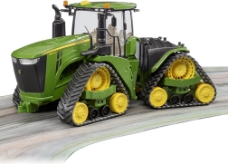 Il trattore cingolato John Deere 9620RX Bruder è realizzato in scala 1:16 ed è una copia perfetta della macchina reale. Dispone di cofano motore apribile, porte della cabina apribili e volante regolabile. La cabina è adattata per le figure Bruder BWORLD.