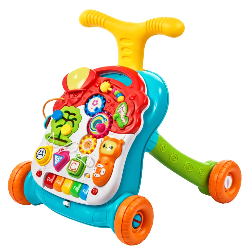 - 5 funzioni in 1: girello, pannello interattivo, inserimento forme, pannello musicale, tavolino