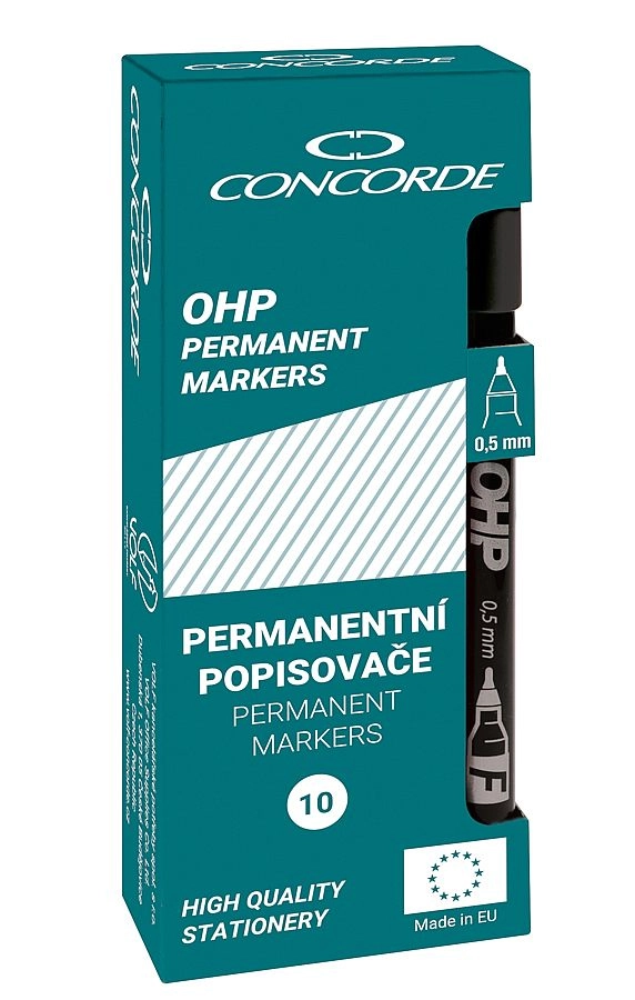 Il pennarello permanente CONCORDE OHP M è la scelta ideale per ufficio, scuola e laboratorio. Grazie all’inchiostro a base di alcool crea un tratto coprente, resistente e ad asciugatura rapida, con ottima adesione su superfici lisce e porose. La punta media M da 1–1,5 mm garantisce marcature leggibili e professionali.