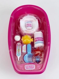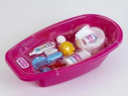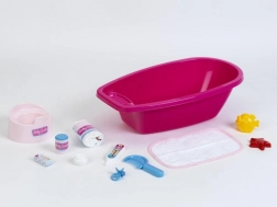 Scopri il divertimento con la grande vasca per bambole, fornita con un set completo di accessori che include tutto il necessario per simulare la cura di un bambino. Il set è perfetto per sviluppare la fantasia dei bambini durante il gioco.