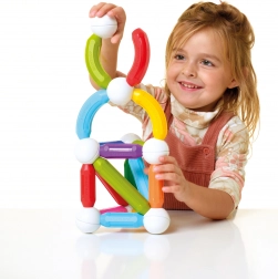Le costruzioni magnetiche SmartMax Start Plus sono una scelta ideale per i piccoli esploratori. Il set include 30 pezzi, tra cui bastoncini lunghi, bastoncini medi, curve e sfere di collegamento, che permettono di costruire strutture semplici e complesse. I bambini possono sperimentare diverse forme e costruzioni 2D e 3D come torri o ponti.