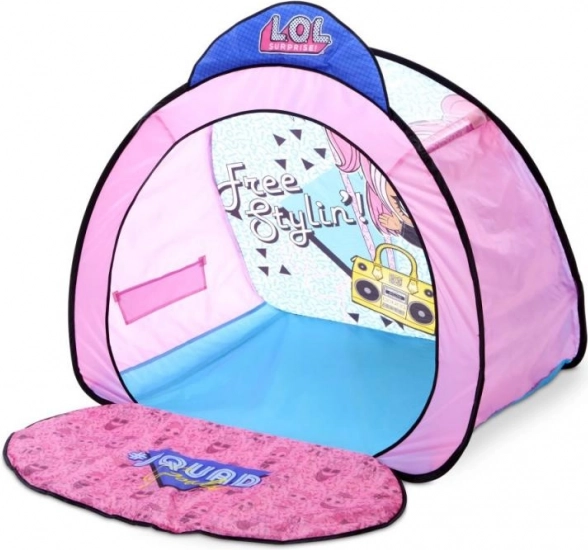 La tenda è decorata con immagini delle stilizzate figure di LOL Surprise, garantendo un'esperienza di gioco interattiva e magica.