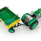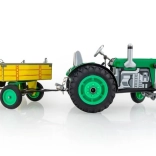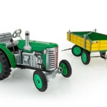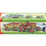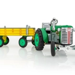 Questo modello unico di trattore è alimentato da un carillon a molla caricato con chiavetta, conferendo al gioco un tocco di autenticità. Una trasmissione funzionante con tre velocità in avanti e una indietro consente ai bambini di manovrare realisticamente il modello. Hanno la possibilità di guidare con il volante e utilizzare il freno a mano per fermarsi. Grazie alla scala 1:25 questo modello mostra esattamente i dettagli di un vero trattore, rendendolo non solo un ottimo giocattolo, ma anche un pezzo da collezione.