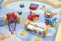 Il solido telaio in legno, le leve (flipper), i tornelli, il campanello e i bersagli creano un’autentica esperienza da flipper a casa sul tavolo. Le gambe pieghevoli consentono un facile riponimento e trasporto, oltre alla regolazione della giusta inclinazione per una corsa vivace delle biglie.