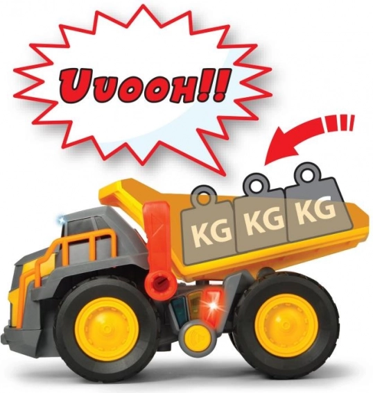 Questo camion ribaltabile Volvo per bambini offre divertimento illimitato per giochi di finzione. Caratterizzato da movimento senza motore e risponde a tre diversi livelli di carico con luci colorate e segnali acustici.