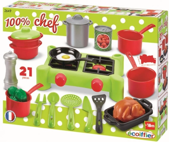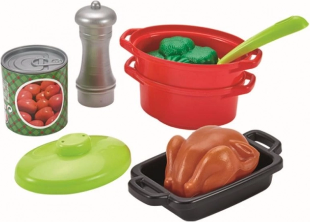 Con questo completo set di pentole i bambini possono divertirsi per ore a cucinare. Il set comprende pentole con coperchi, padelle, tegami e diverse pietanze che aggiungono realismo al gioco.