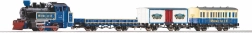 - locomotiva a vapore (1 pz), carrozza passeggeri (1 pz), carri merci (2 pz), binari curvi R2 con massicciata 55412 (12 pz), binario dritto G231 con massicciata 55401 (1 pz), binario dritto G231 con collegamento di alimentazione 55406 (1 pz), massicciata per morsetto di alimentazione 55447 (1 pz), morsetto di alimentazione analogico 55270 (1 pz), controllo analogico wireless con alimentatore (1 pz)
