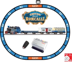 Questo set ferroviario completo contiene tutto per iniziare subito a viaggiare: locomotiva a vapore, carrozza passeggeri, carri merci coperto e aperto, ovale di binari con massicciata e alimentazione con controller analogico wireless. Il treno nell’attraente design RONCALLI convince per l’aspetto realistico e il funzionamento affidabile.