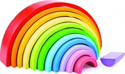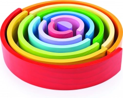 Il grande arcobaleno in legno è un giocattolo educativo intramontabile che favorisce il gioco libero senza regole. I bambini possono impilare gli archi, sovrapporli, collegarli e combinarli con altri set – le possibilità sono praticamente infinite. Grazie alla struttura robusta e alla superficie liscia, l’arcobaleno è piacevole da maneggiare e resiste al gioco quotidiano.