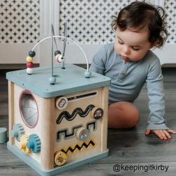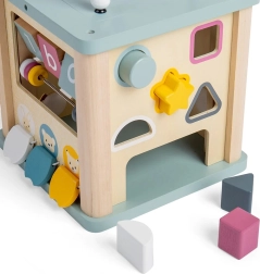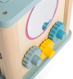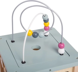 Scoprite il versatile cubo motorico in legno 100% FSC di alta qualità, che intrattiene i bambini per ore. Su ogni lato li aspetta un’attività diversa – inserimento forme, pista per palline, ingranaggi e altro ancora. La combinazione di legno naturale e delicati colori pastello è ideale per bambine e bambini. Il giocattolo favorisce lo sviluppo della motricità, della comunicazione e del riconoscimento dei numeri ed è sicuro per i bambini grazie a materiali sostenibili certificati FSC.