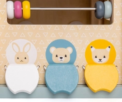 I delicati colori pastello e le finiture lisce invogliano a giocare ripetutamente, mentre le attività variegate sostengono diverse abilità – dalla motricità fine allo sviluppo linguistico. La certificazione FSC garantisce l’origine responsabile del legno e una produzione consapevole.