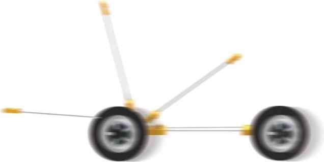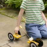 L'auto è realizzata in materiale plastico leggero e resistente, ideale per l'uso all'esterno. Il design semplice e le grandi ruote nere permettono una facile manovrabilità e forniscono un meccanismo di propulsione che è il cuore di questo dispositivo intelligente.