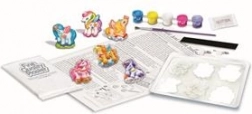 In questo set creativo puoi modellare e dipingere calchi di gesso. Il prodotto include tutto il necessario per realizzare magneti o spille a forma di unicorno.