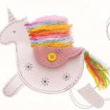 Con questo kit creativo i bambini cuciono facilmente il proprio portamonete unicorno in resistente materiale tessile simile alla pelle. I pezzi sono preforati per un facile infilaggio, così i bambini apprendono in sicurezza le tecniche base di cucito e alla fine ottengono un accessorio pratico in cui riporre i piccoli oggetti.