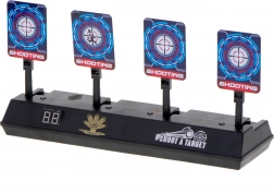 Il bersaglio elettronico è un'ottima scelta per allenare la precisione e per un divertimento competitivo a casa. I quattro target indipendenti consentono diverse modalità di gioco: dai duelli di velocità al tiro mirato con il minor numero possibile di dardi. A ogni colpo il bersaglio si abbassa; dopo aver colpito tutti e quattro, ottieni 1 punto e i bersagli tornano automaticamente in posizione iniziale.