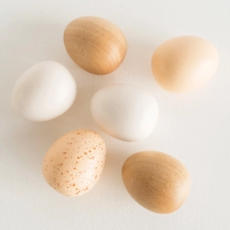 - Contenuto della confezione: 6 uova di legno + 1 cassettina di legno con manici