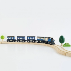 Il treno è compatibile con altri giocattoli di Le Toy Van e con piste standard, permettendo infinite possibilità di combinazione. È dipinto a mano con colori non tossici a base d'acqua, garantendo un gioco sicuro per i bambini.