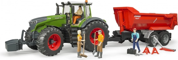 Il set include la figurina del meccanico con arti mobili e accessori da officina (martello, cacciavite, cric e altro), grazie ai quali è possibile simulare riparazioni e assistenza del trattore. Il modello è realizzato in resistente plastica ABS e policarbonato, garantendo lunga durata anche con uso intensivo.