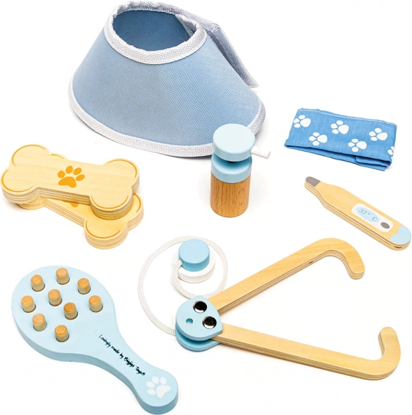 Grazie alla combinazione di legno e tessuto, il gioco è piacevole al tatto, resistente e sicuro. Il set è progettato per stimolare l'immaginazione, la motricità fine e l'empatia nella cura dei pazienti a quattro zampe. Un'ottima scelta per un gioco di ruolo significativo senza plastica superflua.