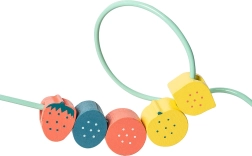 Perline colorate a forma di frutta su un filo flessibile sostengono la motricità fine e la coordinazione dei movimenti durante il gioco quotidiano.