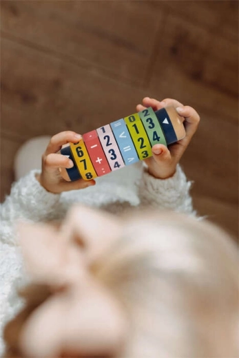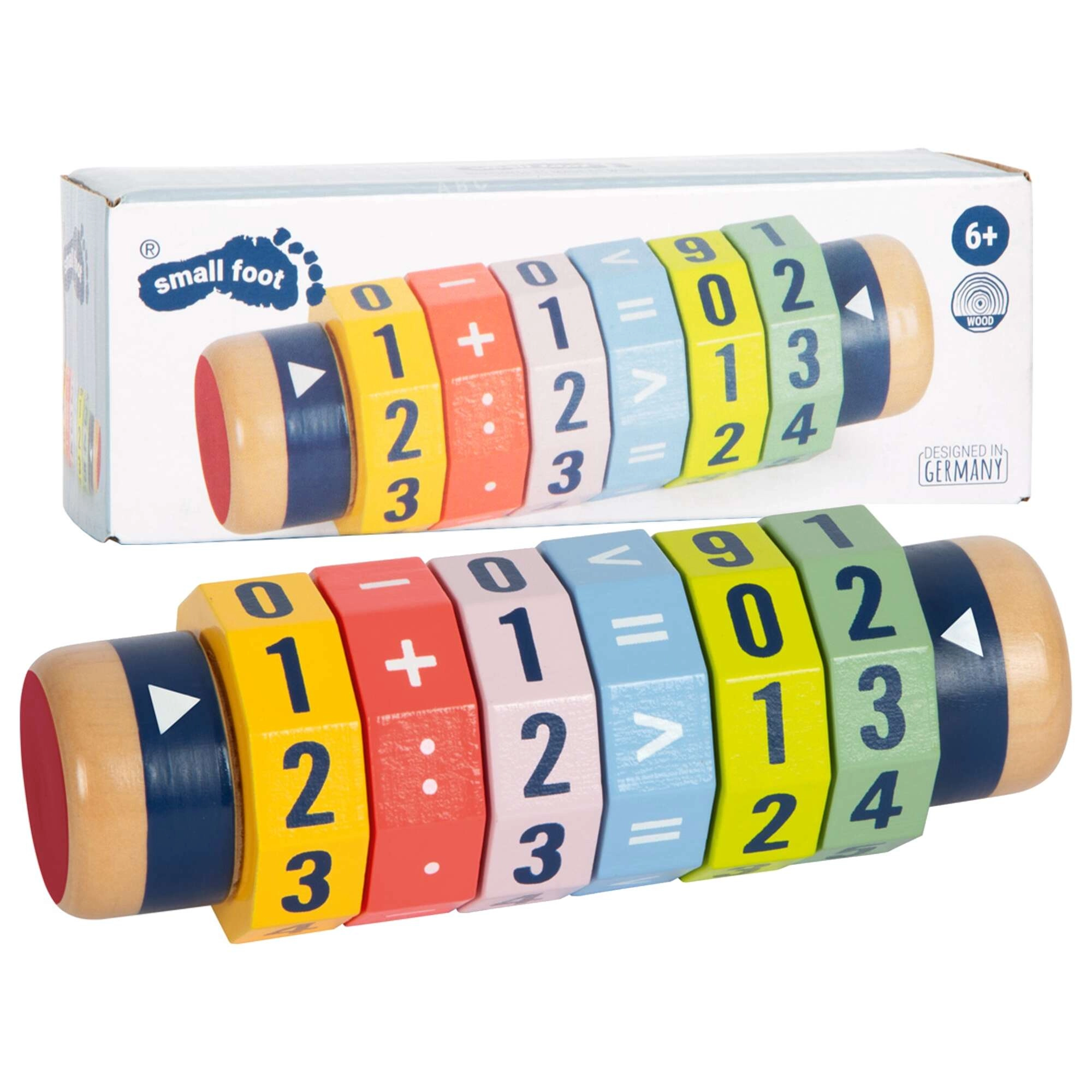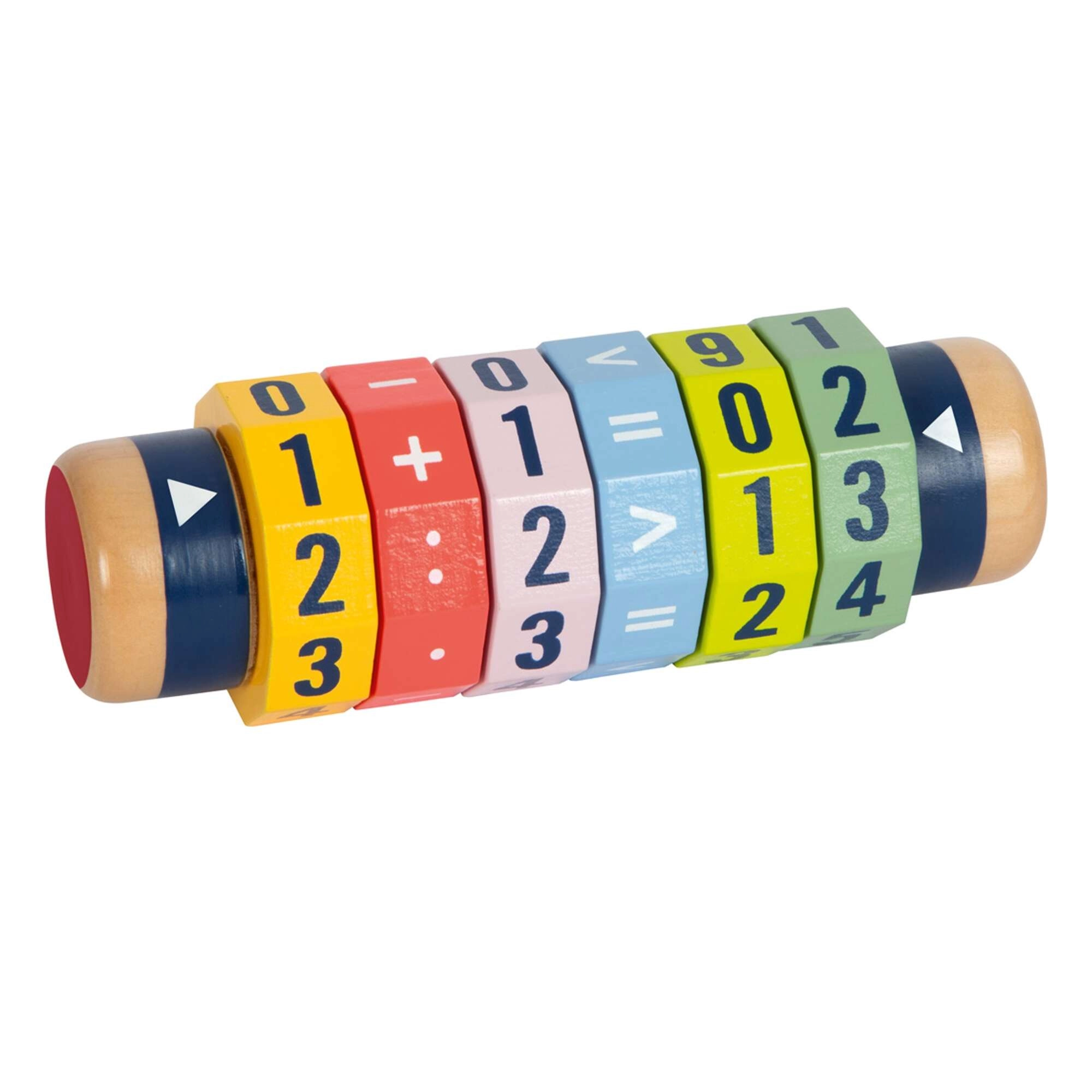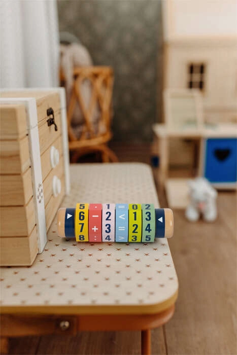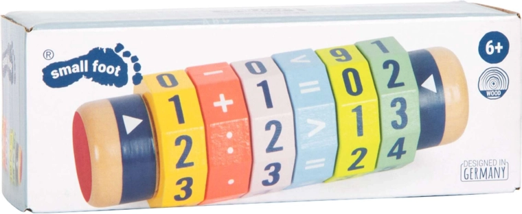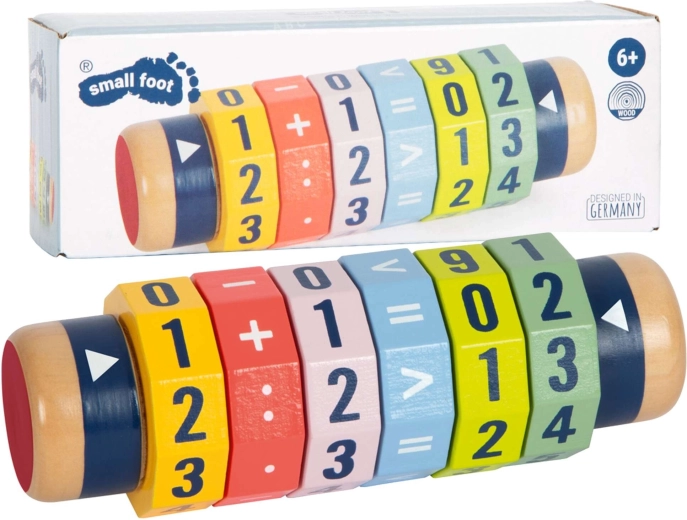 Scoprite un modo divertente per avvicinarsi alla matematica. Il cilindro in legno con sei anelli girevoli consente ai bambini di creare equazioni semplici e più complesse e di confrontare i numeri. Grazie ai colori vivaci e alle cifre ben visibili, i bambini imparano giocando e sviluppano motricità fine e concentrazione.