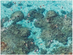 Goditi il cambio di atmosfera: una spiaggia affollata vista dall’alto e un tranquillo mare turchese con scogli. Il doppio impatto visivo prolunga il divertimento e amplia la gamma di difficoltà.