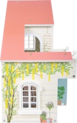 Elegante casetta in legno per bambole con lato frontale aperto, dotata di tre stanze, terrazza e giardinetto per un gioco realistico. Non mancano la scala a chiocciola, le finestre apribili, il bagno moderno con parete in plexiglass e 8 pezzi di arredo funzionale con accessori tessili. La struttura compatta e stabile dal design moderno e luminoso è ideale sia per la cameretta sia per il soggiorno.