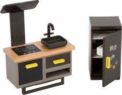 Questa casetta per bambole dal design moderno propone un concept abitativo aperto con cucina e zona pranzo, camera da letto, bagno e un’ampia terrazza con area salotto. Grazie al lato aperto, il gioco è accessibile dal fronte e consente a più bambini di divertirsi contemporaneamente. La facciata chiara e i toni neutri si adattano a qualsiasi interno.
