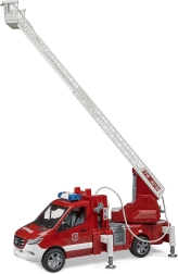 Camion dei pompieri Mercedes-Benz Sprinter con elementi funzionali è il giocattolo ideale per tutti i piccoli appassionati di operazioni di salvataggio antincendio. Include una pompa dell'acqua completamente funzionale, una scala estensibile e un faro realistico con effetti luminosi e sonori.