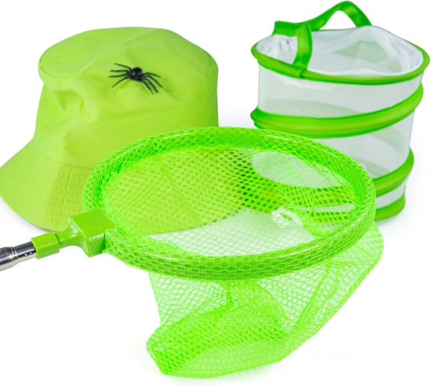 Trasformate ogni passeggiata in un'avventura con questo set completo per catturare gli insetti pensato per i piccoli esploratori. Include retino con manico telescopico, contenitore per le catture, lente d’ingrandimento, pinzette raccogli-insetti, binocolo e un pratico cappellino parasole. Grazie alla borsa a rete pieghevole è leggera, compatta e ideale per i viaggi. Realizzata con materiali resistenti, adatta dai 3 anni.