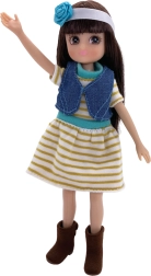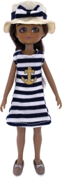 Bambola con vestito a tema nautico e accessori coordinati, pronta per avventure estive.