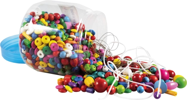 Questo set, che include un vivace mix di perline, aiuta a sviluppare la creatività e la motricità fine.