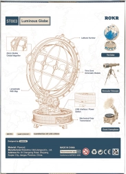 Questo kit 3D combina meccanica ingegnosa e design estetico. Il globo in legno con ingranaggi a vista ruota con facilità; l’illuminazione dal tono caldo crea un’atmosfera accogliente e, grazie alla lente meccanica, potrai leggere comodamente anche i toponimi più minuti. Il look retrò, ricco di ornamenti, è completato da scale di latitudine/longitudine e indicazioni dei fusi orari.