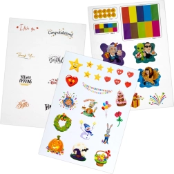 Tre fogli di adesivi e cinque etichette scrivibili donano al regalo un tocco personale: dai complimenti ai messaggi romantici.