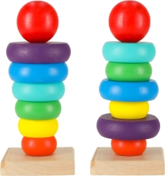 I giocattoli in legno, noti per il loro design semplice, rafforzano la creatività e lo sviluppo intellettuale dei bambini. La torre impilabile colorata offre non solo divertimento, ma supporta anche lo sviluppo del pensiero logico e creativo. Impilare gli anelli migliora la motricità e aiuta ad apprendere i colori.