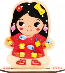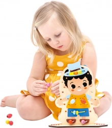 Scoprite un creativo gioco di infilatura in legno che intrattiene i bambini per ore sviluppando al contempo le loro abilità. La tavoletta stampata su entrambi i lati con personaggio e il ricco set di accessori favoriscono la motricità fine, la coordinazione mano–occhio e la creatività. Grazie ai 60 pezzi, i bambini allenano la pazienza, il pensiero logico e imparano il problem solving giocando.