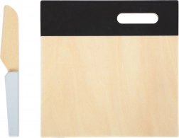 Su un lato del tagliere si può scrivere con il gesso. I bambini possono annotare la lista della spesa o una ricetta e appendere facilmente il tagliere grazie all'occhiello.