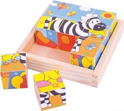 Nove cubi di legno creano sei immagini diverse. Ruota ogni cubo per comporre l’immagine oppure mescolali per divertirti! Ogni pezzo è realizzato per facilitare il sollevamento, la presa e l’esplorazione da parte delle piccole mani.