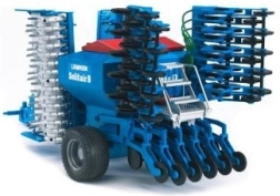 Modello realistico della seminatrice LEMKEN Solitair 9 in scala 1:16 del marchio Bruder, ricco di dettagli funzionali per un gioco autentico. Dispone di un serbatoio per semi riempibile, braccio e scaletta ribaltabili, dischi mobili e timone girevole a 180°. È compatibile con i trattori Bruder serie 20xx, 21xx e 30xx ed è realizzato in plastica di qualità, prodotto in Germania.