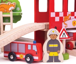 Scala, idrante, albero con animaletti e le figurine dei vigili del fuoco portano situazioni autentiche – dallo spegnimento degli incendi al salvataggio del gatto sull’albero.