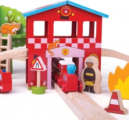 Questa ferrovia in legno a tema caserma dei pompieri trasforma ogni stanza in un centro di soccorso. I bambini possono attraversare il tunnel della caserma, correre con il camion dei pompieri, far partire il treno di salvataggio con vagoni rimovibili e aiutare i vigili del fuoco con la scala o l’idrante. Grazie ai ricchi dettagli e alla struttura robusta, il giocattolo stimola la fantasia e insegna ai bambini a gestire le situazioni.