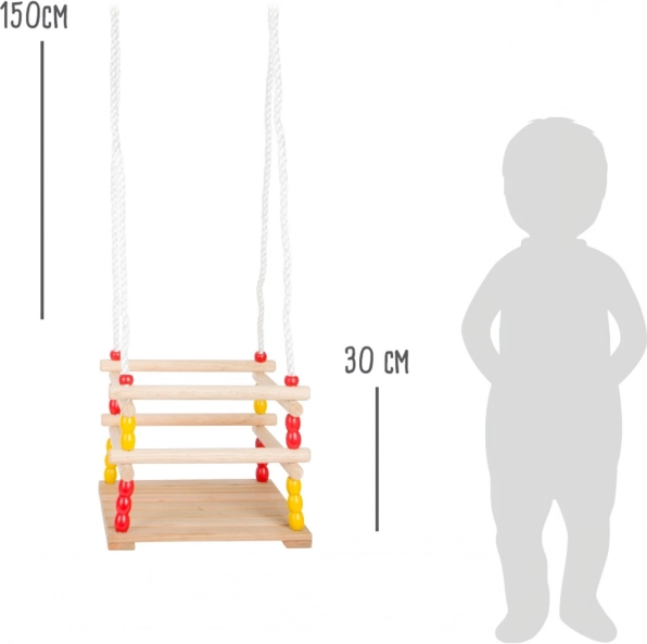 Questa altalena in legno SMALL FOOT è progettata per un’oscillazione comoda e sicura dei bambini più piccoli. La protezione offre supporto sia nella seduta che nella presa, le corde robuste con occhielli metallici consentono la regolazione rapida della lunghezza e gli anelli resistenti garantiscono un fissaggio semplice. Il legno massello lavorato con precisione conferisce all’altalena lunga durata e un aspetto naturale.