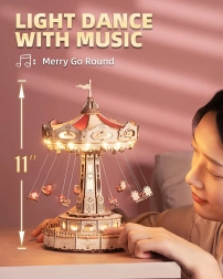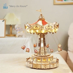 Questo puzzle 3D a carillon rappresenta un’elegante giostra a catene con ricche decorazioni in tonalità naturali e colorate. Una volta assemblata, la giostra gira grazie al motore, si illumina con LED e riproduce la melodia Merry Go Round, creando un’atmosfera nostalgica e romantica. Il kit arriva smontato con istruzioni dettagliate: ideale per un progetto creativo del weekend.